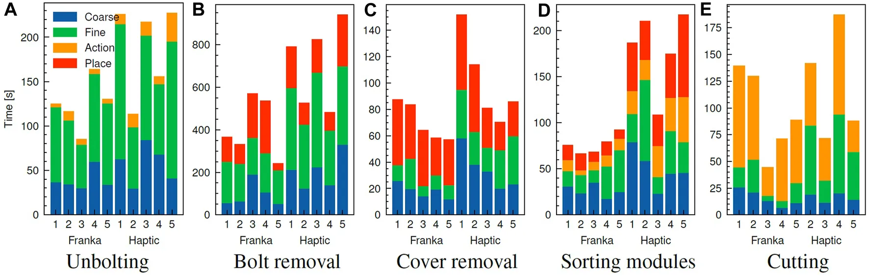 However, this configuration also led to a 10%–30% decrease in the first-attempt success rate. The research found that for tasks like unbolting and grasping, the realism of force feedback was less critical than the directional information. In contrast, for vacuum pick-and-place and contact cutting tasks, 1:1 force mapping provided stronger tactile cues from the environment, improving performance.